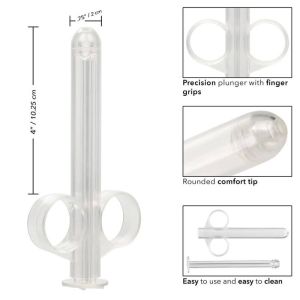 Reusable, refillable, and easy to clean, the XL Lube Tube is a lubricant dispensing tube that lets you lubricate with pinpoint precision and holds up to 0.75 fl oz of lubricant. To deliver luscious lubrication to just the right spot, the XL Lube Tube has a slim shaft, rounded tip and seamless body. The slim tube is equipped with two finger loops and an easy-to-use plunger that make it easy to control the lubricant flow. Simply fill the tube with your chosen liquid or lubricant and use the slim tip to deliver the perfect dose to just the right spot every time. This tube is easy-to-use and easy-to-clean. Prior to and after each use, wash the tube internally and externally with warm water and soap, then disinfect with the Universal Toy Cleaner.